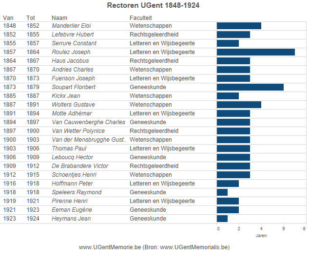 Glijd met je cursor over de grafiek voor de namen van de rectoren; bekijk de grafiek full screen.