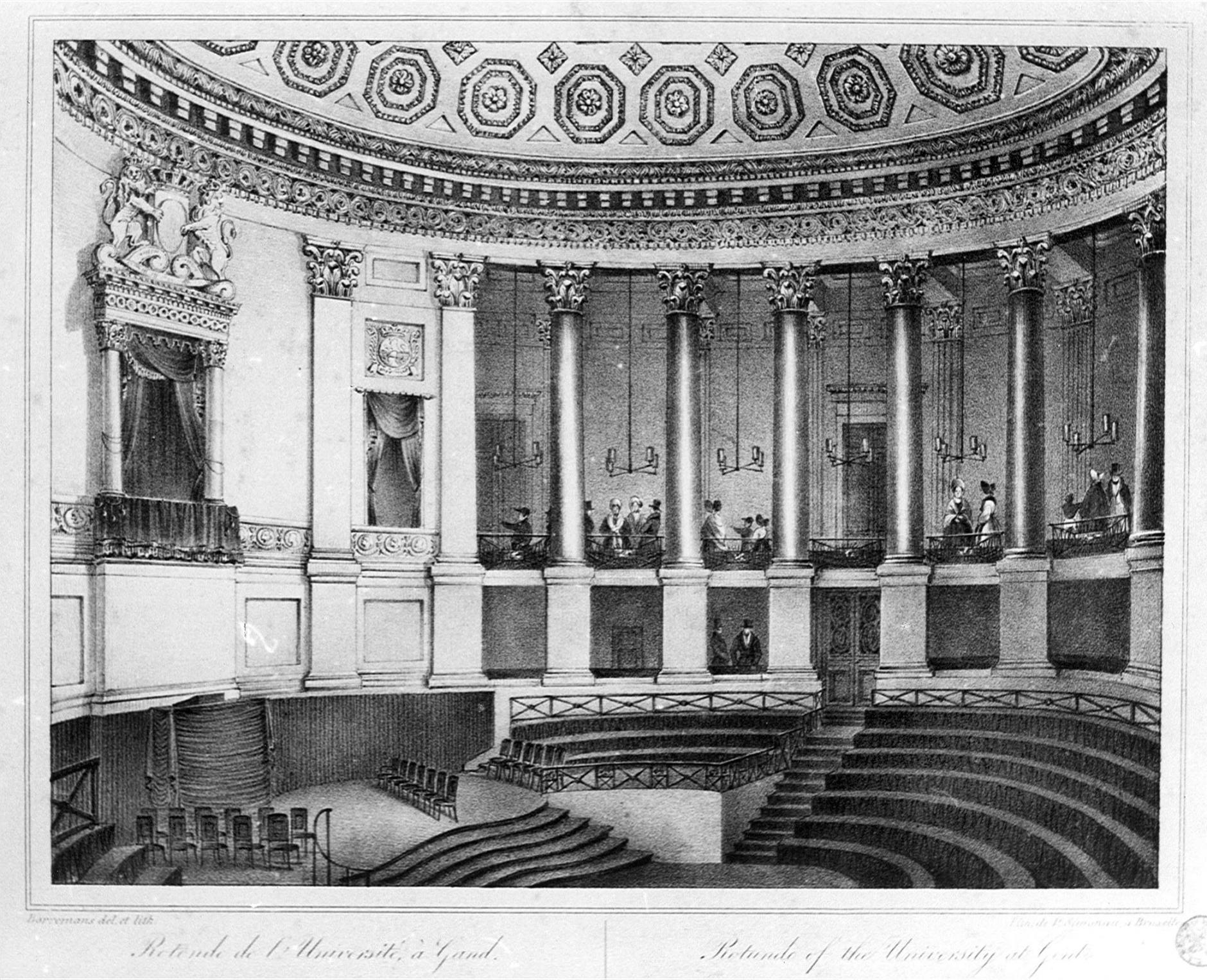 De Gentse burgerij is verheugd met de beslissing van Willem I op 23 september 1816 om in Gent een van de drie rijksuniversiteiten van de Zuidelijke Nederlanden op te richten. Een universiteit zal de uitstraling van de groeiende handels- en nijverheidsstad vergroten. Het stadsbestuur is bij wet verplicht om in de huisvesting van de universiteit te voorzien, maar beslist op 16 november 1816 meer te doen dan enkel leslokalen en een bibliotheek in te richten: het wil voorzien in een prestigieus ‘Paleis van de universiteit’. Dat gebouw moet niet alleen dienen als locatie voor de academische plechtigheden, maar ook om het prestige van de nieuwe instelling én van de stad die haar herbergt,uit te stralen. Gent ziet het groots: dit feestpaleis van de universiteit wordt het hart van de stadsvernieuwing.