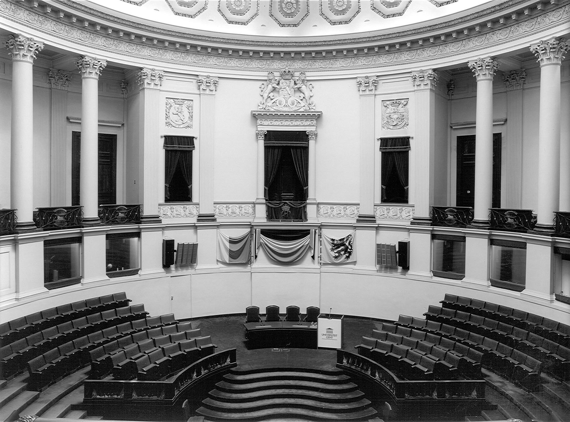 Danniau, Fien. "Bouwgeschiedenis Aula". UGentMemorie. Laatst gewijzigd 01.09.2015. www.ugentmemorie.be/artikel/bouwgeschiedenis-aula.